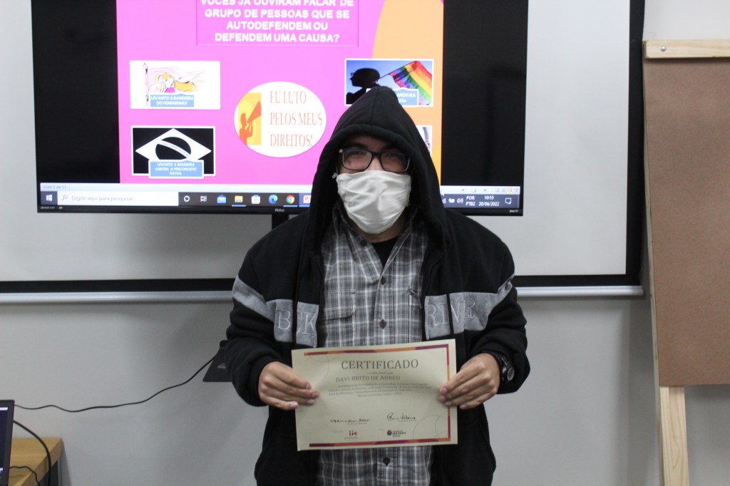 Autodefensor – Lucas .. – “O grupo mudou muita coisa em minha vida, sou autodefensor a 10 anos sempre lutando pelos direitos das pessoas com deficiência intelectual. Depois que aprendi os meus direitos, aprendi a me defender. Antes de entrar no grupo não sabia me defender, quem falava por mim era minha mãe. Em 2016 comecei a trabalhar comecei a falar por mim, o grupo dos autodefensores ajudou a me amadurecer.