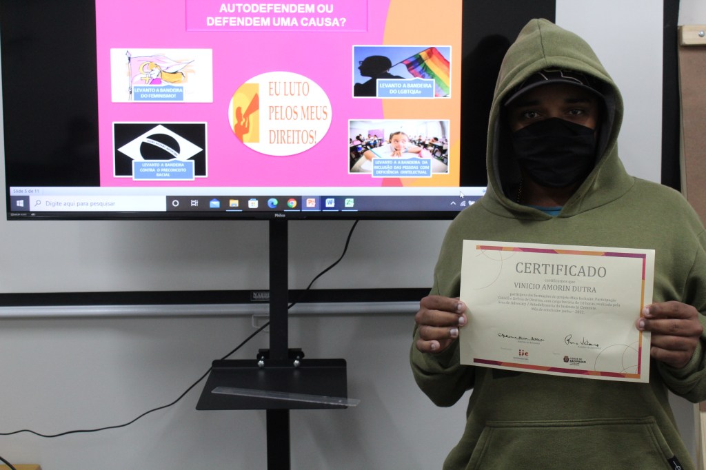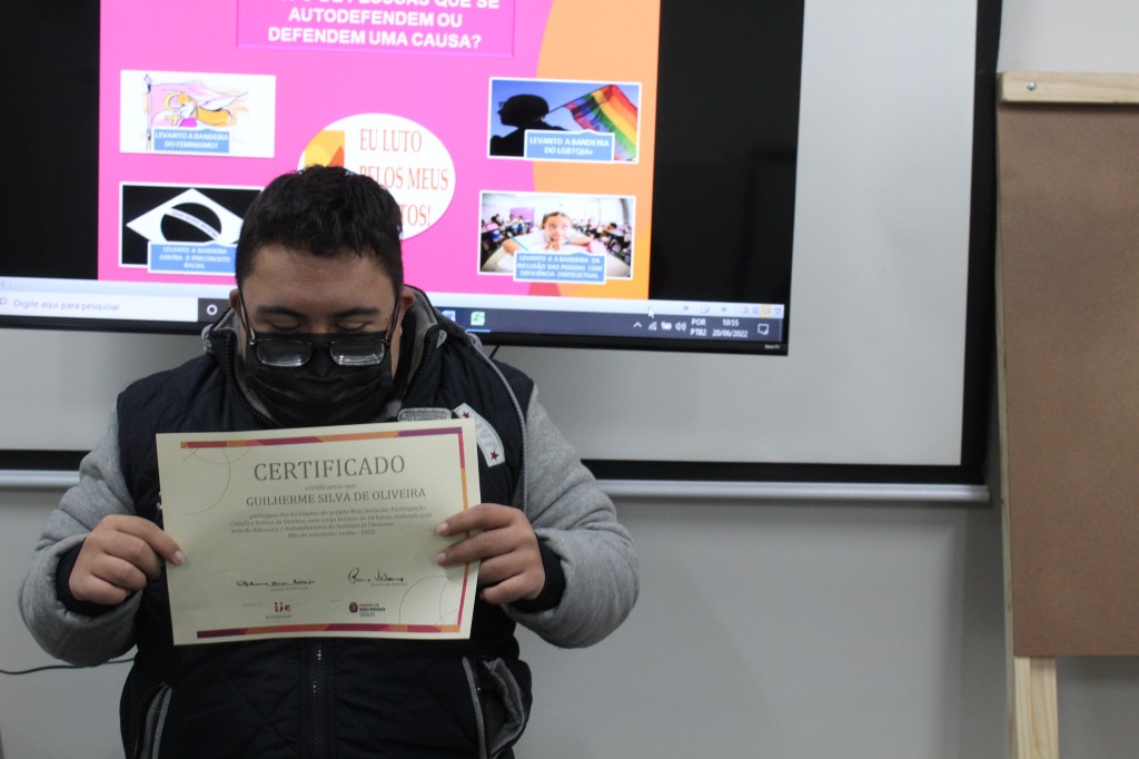 Hoje terminamos a formação, com a primeira turma de jovens com deficiência intelectual do Instituto Jô Clemente. Ensinamos a eles sobre os direitos de casar, votar, educação entre outros que nós pessoas com deficiência temos por direitos. Eles ficarão muito felizes de aprender sobre os direitos e de receber o certificado.