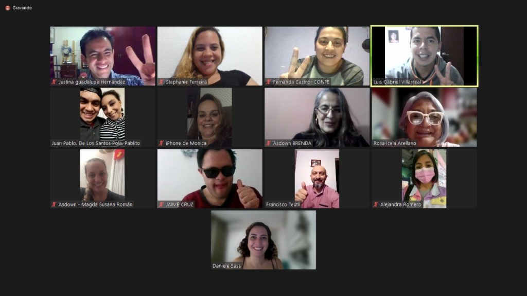 01\12 – eu Stephanie Lima e Mônica Rocha acabamos de sair da reunião da Inclusion International / Empower US junto dos autodefensores da América Latina. Falamos sobre o novo vírus do covid e o medo das pessoas no mundo. Falamos também sobre o planejamento para ano que vem das atividades. Cada um tinha que falar um tema qua gostaria de falar e eu falei sobre sexualidade da pessoa com deficiência intelectual e como a sociedade ainda nos trata como crianças.